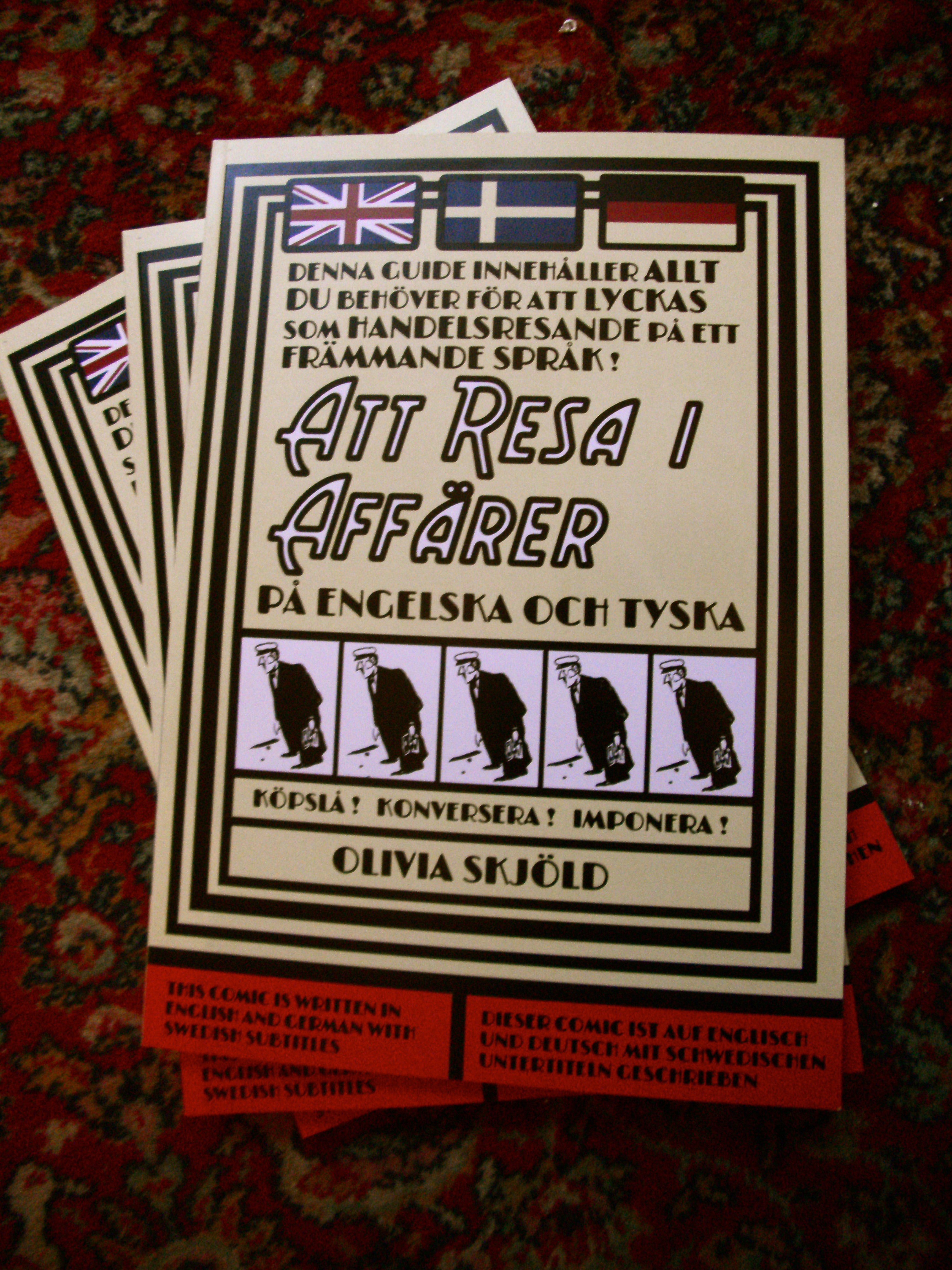 Jag utkommer nu med seriealbumet Att resa i affärer – på engelska och tyska på förlaget Drömbåt Ord.