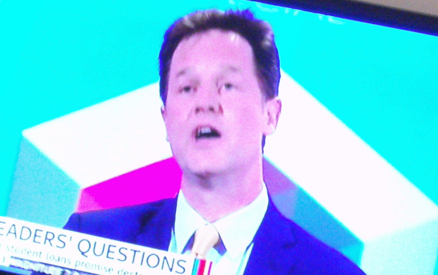 Och så kom det en sista radda svarta bilar och bildörrar slogs upp och igen och Nick Clegg, ledaren för liberaldemokraterna, skyndade ut och tog trappan i ett språng som det verkade och in i stadshuset.